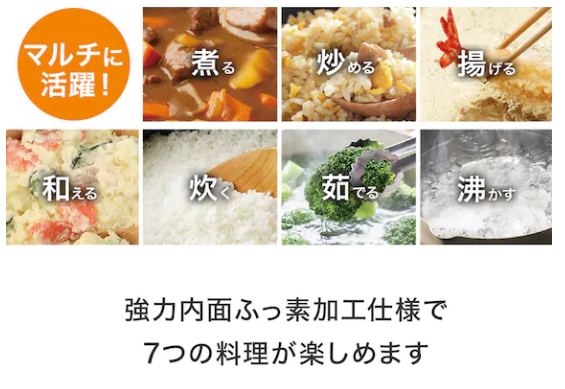| 1台7役 | 温度耐性が高い | 揚げる・炊く |