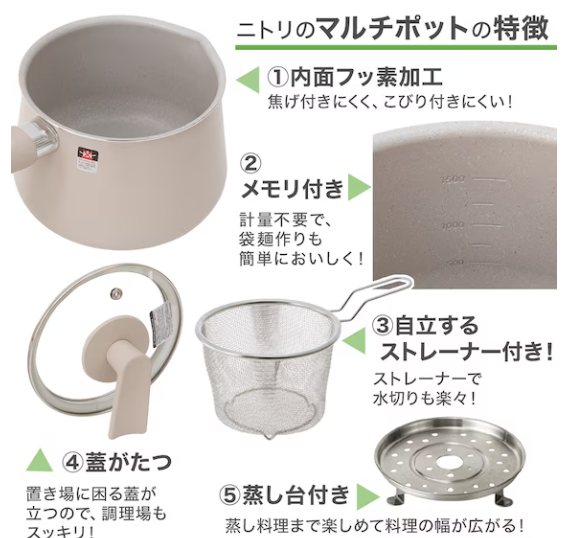こちらはニトリネットのマルチポット1台5役、999円のものです。