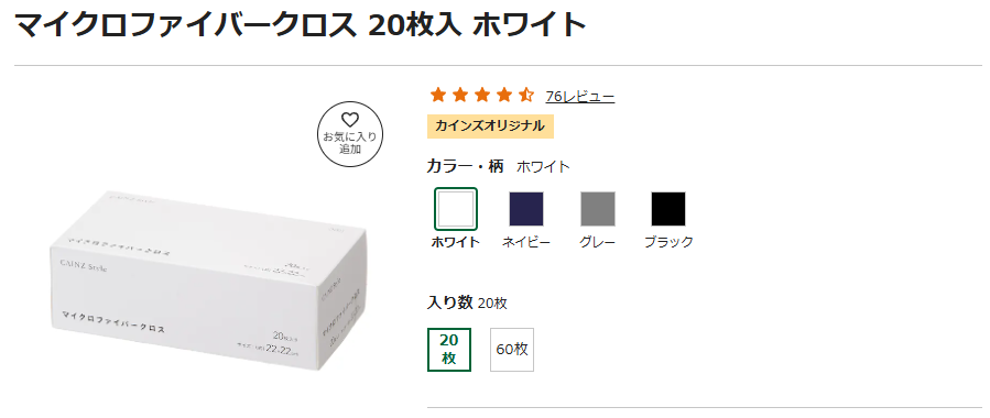 カインズのマイクロファイバークロス 299円20枚入りはこちら